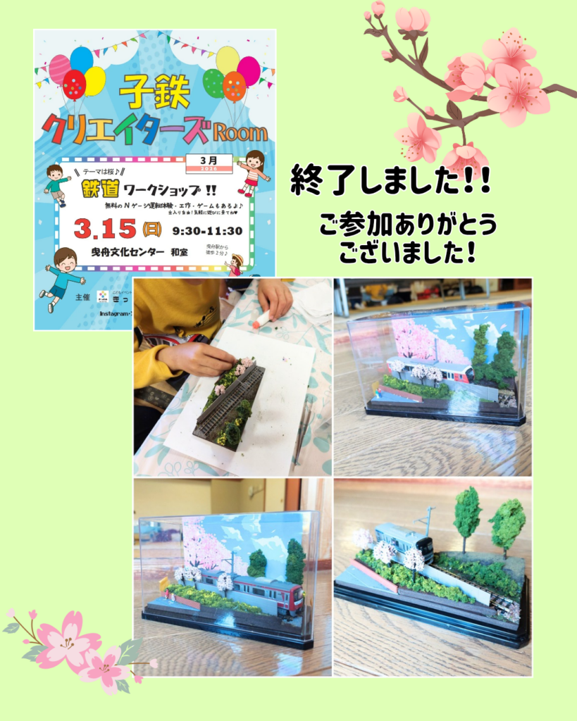 サイズは横幅15cmと小さいながらも、レール敷きや地面の製作、樹木やパーツ付けなどの基礎的な風景の作り方を体験できます