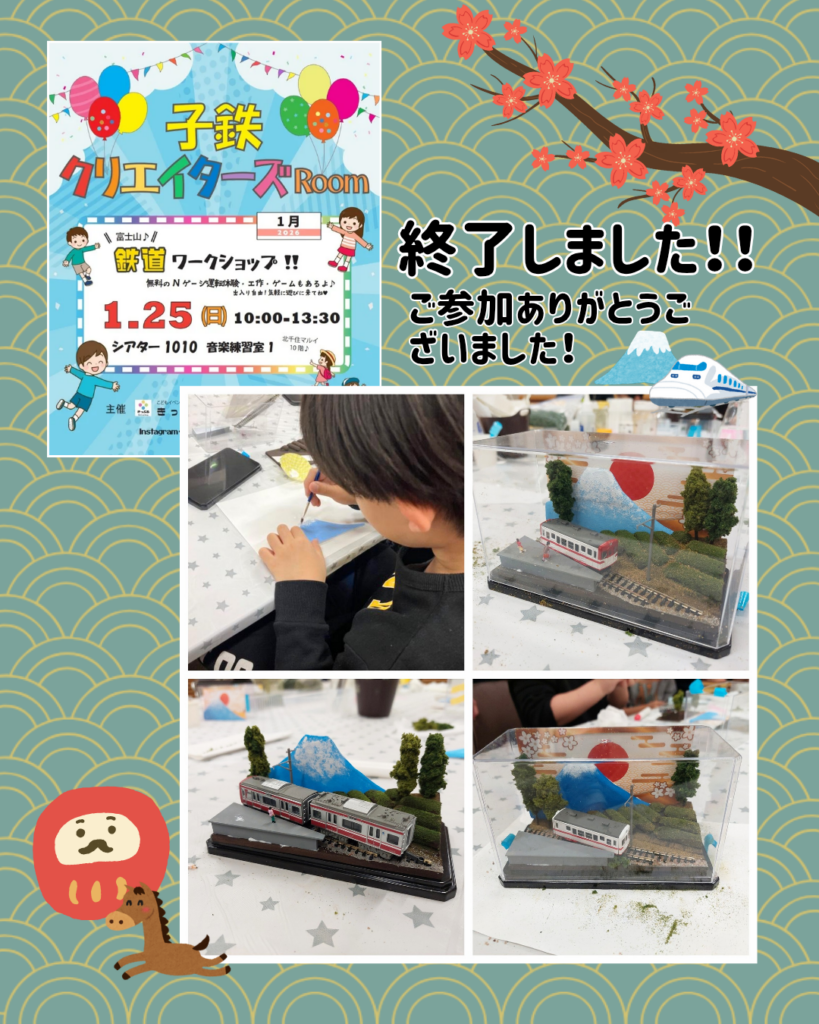 富士山の色塗りに挑戦したり、茶畑の作り方を解説しながら製作します