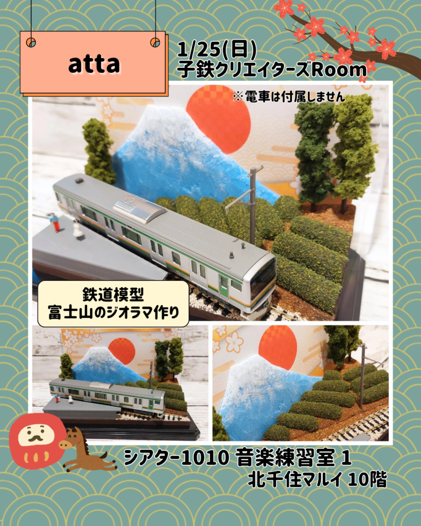 富士山の色塗りに挑戦したり、茶畑の作り方を解説しながら製作します